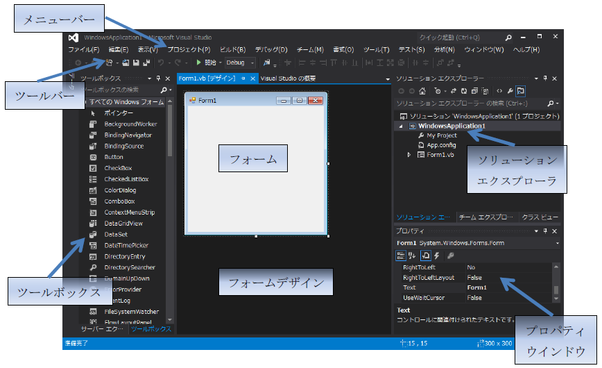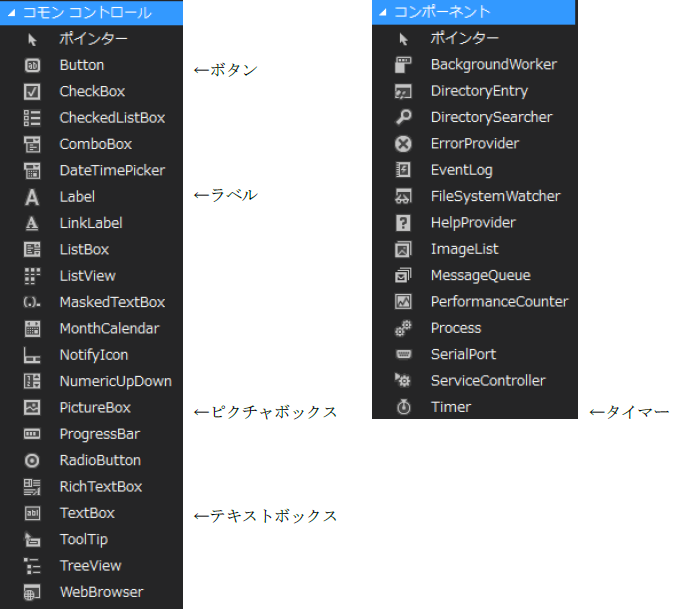 →プログラムを作成していくための土台です。1つのプログラムで2つ以上のフォームを利用することも可能です。