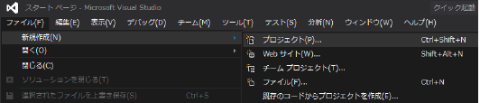 [ファイル]–[新規作成]—[プロジェクト]を選択する。